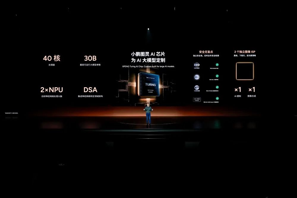 小鹏图灵芯片是一款专为AI设计的处理器,具备40核处理器,能够本地运行30B参数的大模型。
