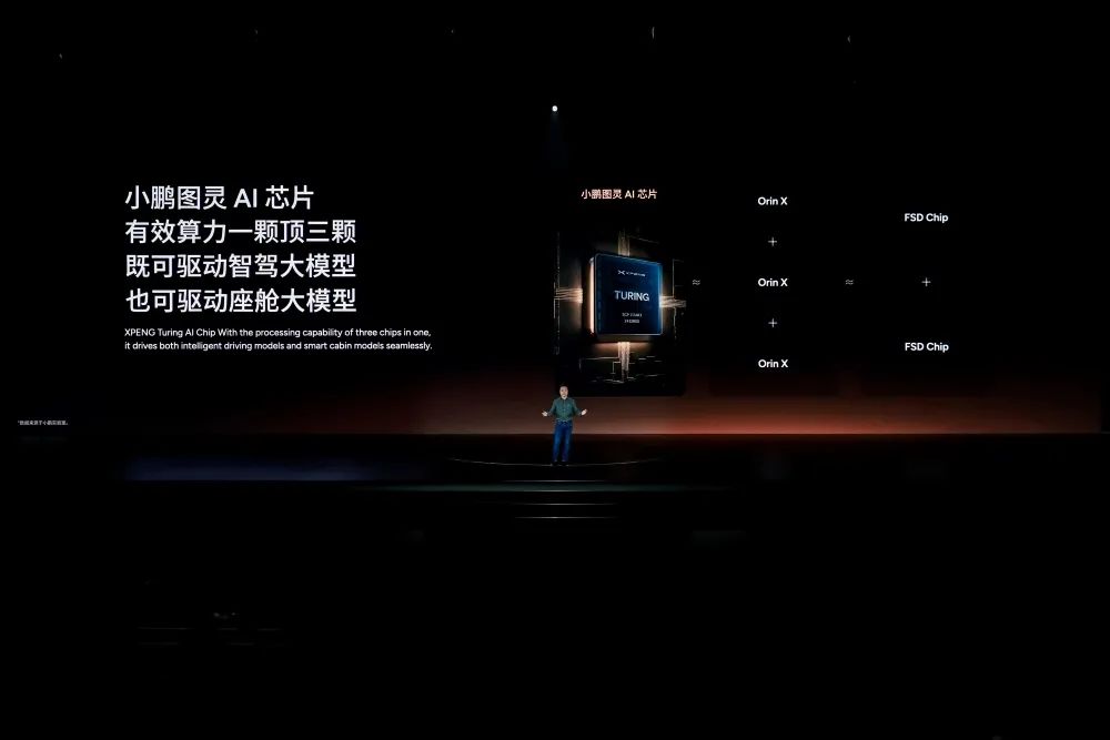 最令人惊喜的无疑是,何小鹏也终于拿出了自研的AI芯片——图灵了,一颗芯片算力达到了三颗英伟达Orin X的水平。