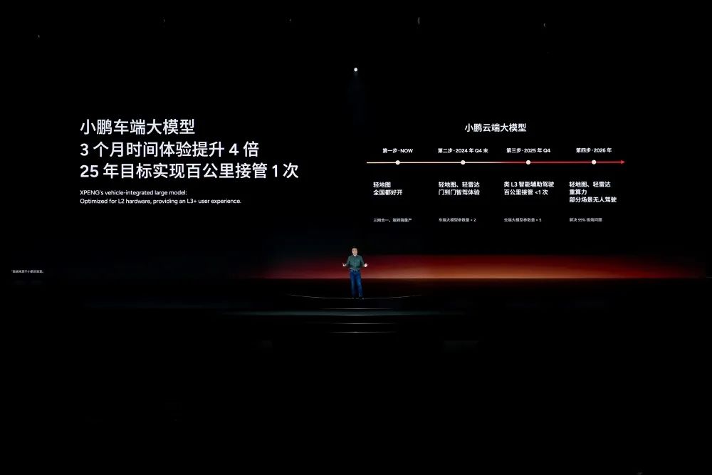 他提到,小鹏图灵AI智驾体系是一个全栈自研的系统,包括云端大模型、车端大模型、面向大模型开发的AI芯片以及底层架构。