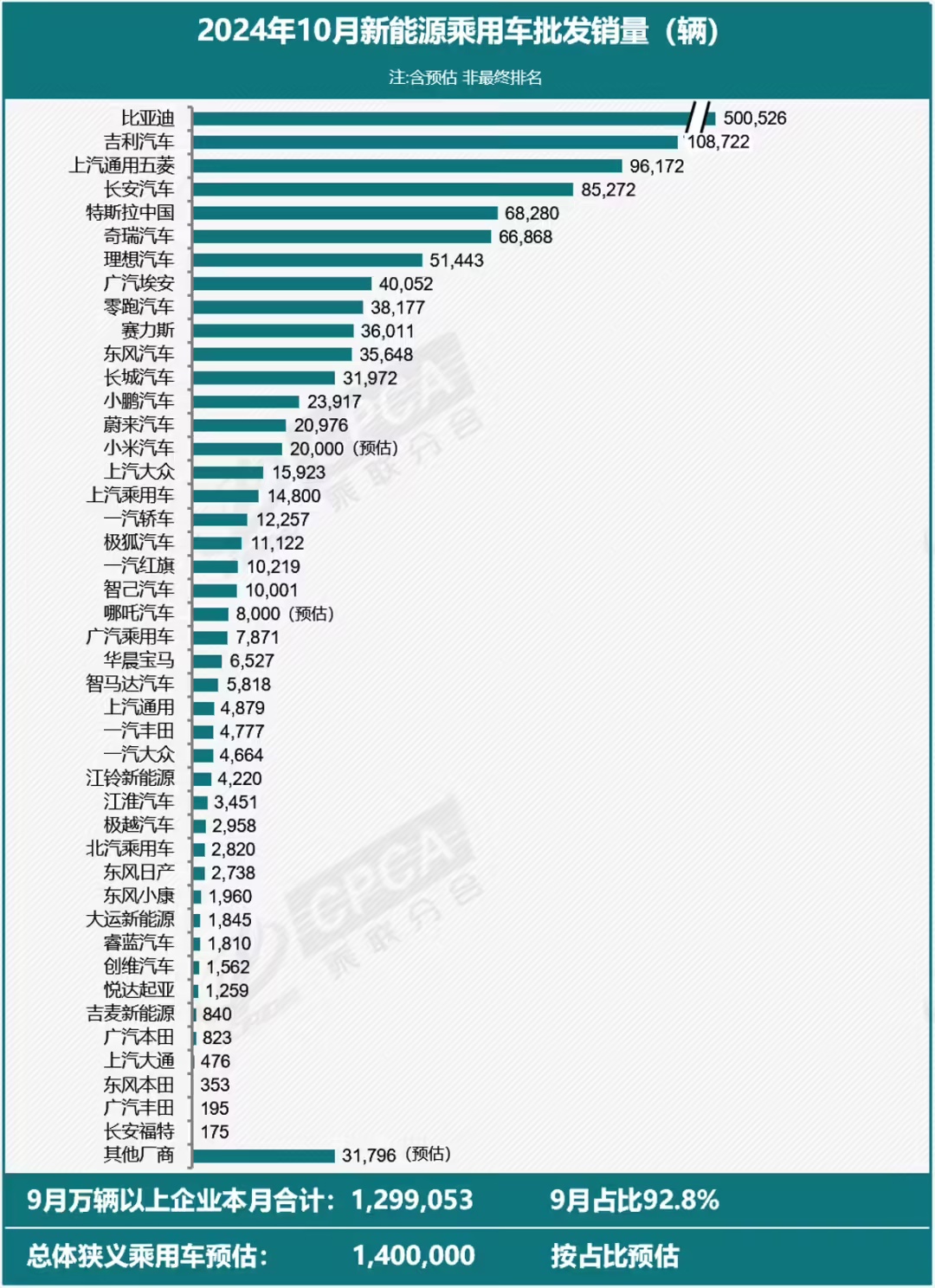 同在本月初,乘联会公布了 10 月新能源乘用车批发销量情况。IT之家附前十名车企及销量总表如下: