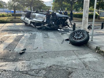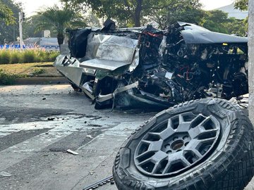 上周末,一辆 Cybertruck 在墨西哥瓜达拉哈拉撞上一座雕像后严重损毁。据当地媒体报道,事故原因之一可能是超速。事故现场照片显示,这辆 Cybertruck 翻倒在路中间,车头、车尾和两侧都严重受损,面目全非,甚至有三个轮毂已从车上脱落。