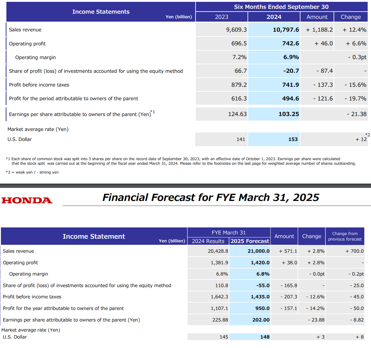 IT之家 11 月 7 日消息,本田昨晚公布了 2024 财年(截至 2025 年 3 月 31 日)第二财季(今年 7-9 月)财务数据。