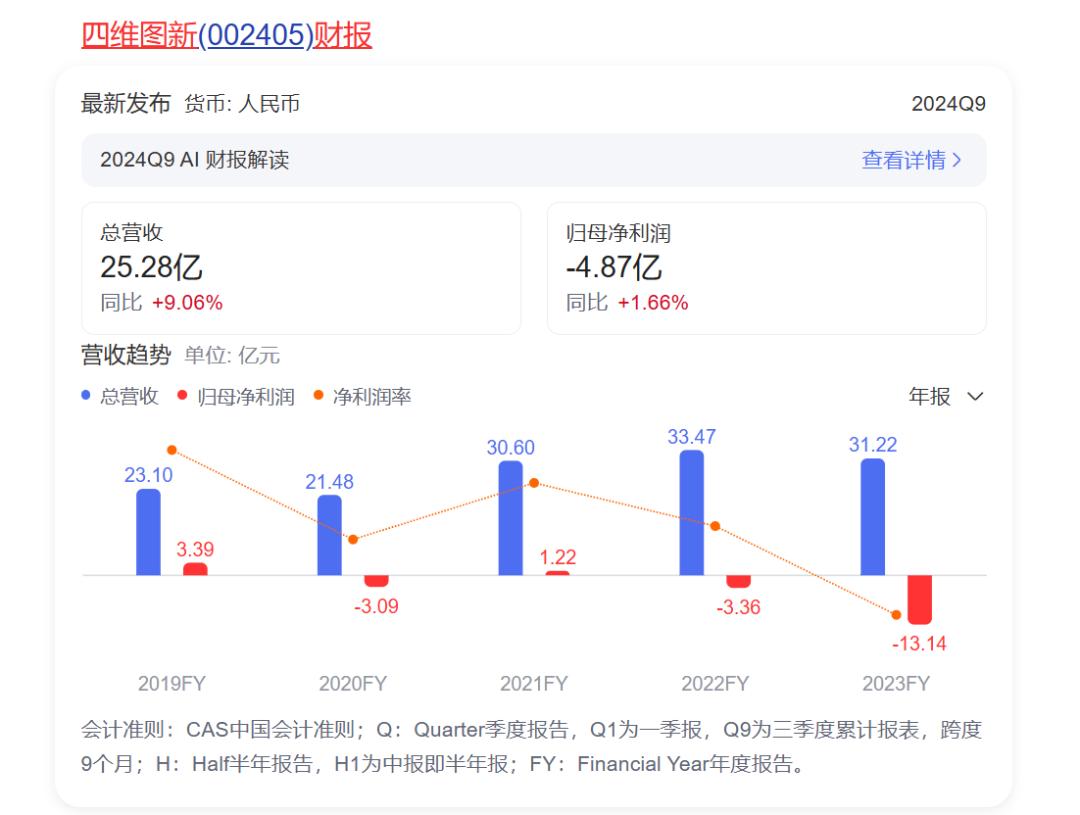 2020年,四维图新更是实现上市以来首次业绩亏损,达到3.09亿元,2021年盈利1.22亿元实现扭亏,但随后2022年至2023年,四维图新分别亏损3.36亿元、13.14亿元,今年上半年再亏损3.56亿元,2022年至今年前三季度累计亏损超20亿元。