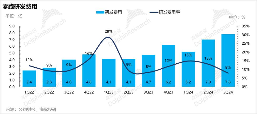 而零跑之前预计2024年全年研发费用将同比增长50%,隐含四季度研发费用8.8亿+,环比三季度至少增长1亿。