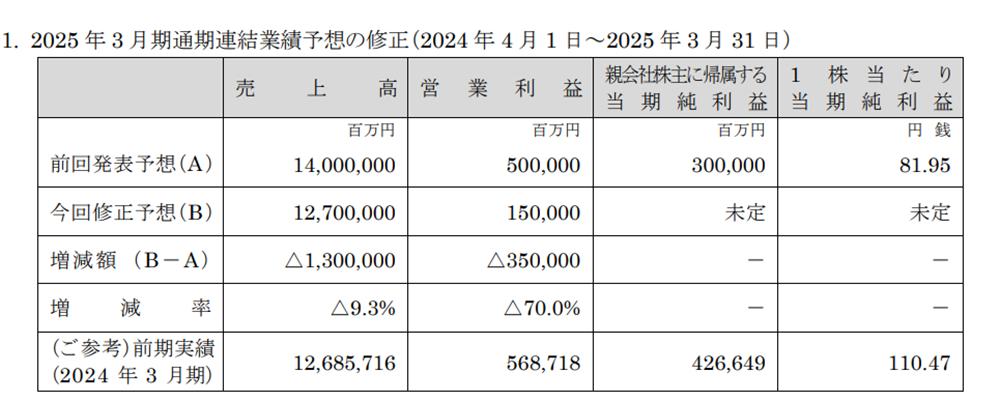 在如此严峻的财务压力下,日产汽车今年第二次下调其2024财年(2024年4月至2025年3月)的财务预期。