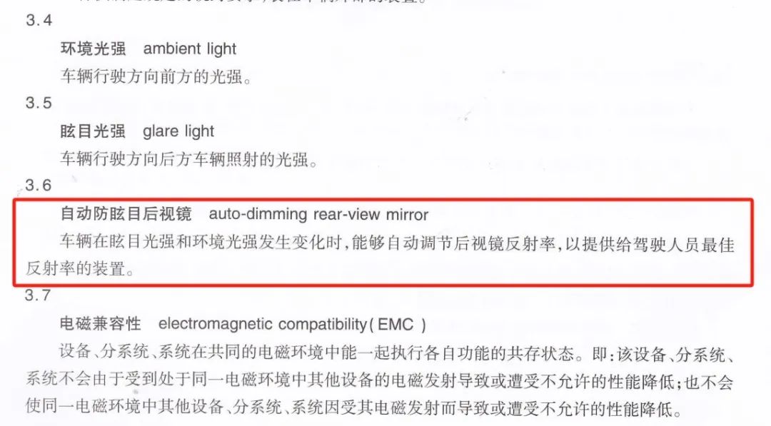 首先,根据《中华人民共和国汽车行业标准(QC/T 947-2013):汽车自动防眩目后视镜技术条件》,其对自动防眩目后视镜的定义是“车辆在眩目光强和环境光强发生变化时,能够自动调节后视镜反射率,以提供给驾驶人员最佳反射率的装置。”因此,领克所谓的集成式技术方案,并不符合该标准。
