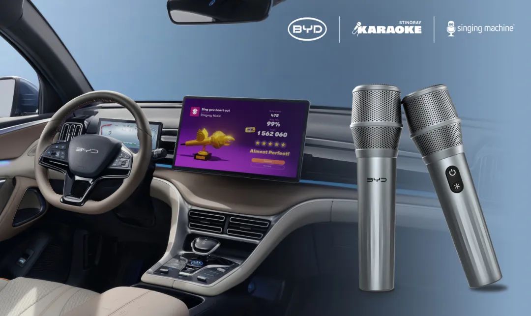 Singing Machine 将推出一款面向国际市场的车载卡拉 OK 麦克风,同时与 Stingray 的车内 KTV 系统及比亚迪车载娱乐系统实现全面整合。比亚迪称,这一合作将通过独特的音效增强和实时音高检测评分功能,带来全新的车内 K 歌体验。