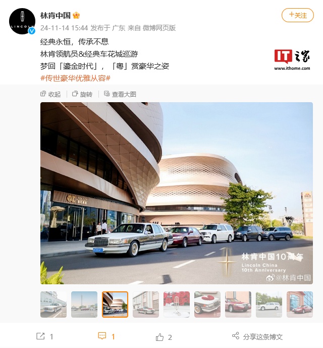 IT之家 11 月 15 日消息,在今天开幕的广州车展上,林肯中国展示了全新的领航员,该车此前已于今年 8 月召开的美国圆石滩车展上正式发布,本次为首次国内亮相。