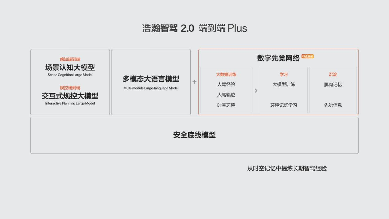 极氪全栈自研浩瀚智驾2.0端到端Plus架构,将原有的场景认知大模型和交互式规控大模型,进化引入了全新的数字先觉网络和多模态大语言模型,让系统犹如本地老司机,表现更胜一筹。