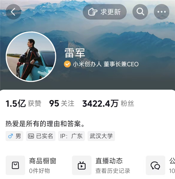 据了解,目前雷军仅抖音一个平台的粉丝量就高达3422.4万,总发布视频作品432条,收获点赞量1.5亿。