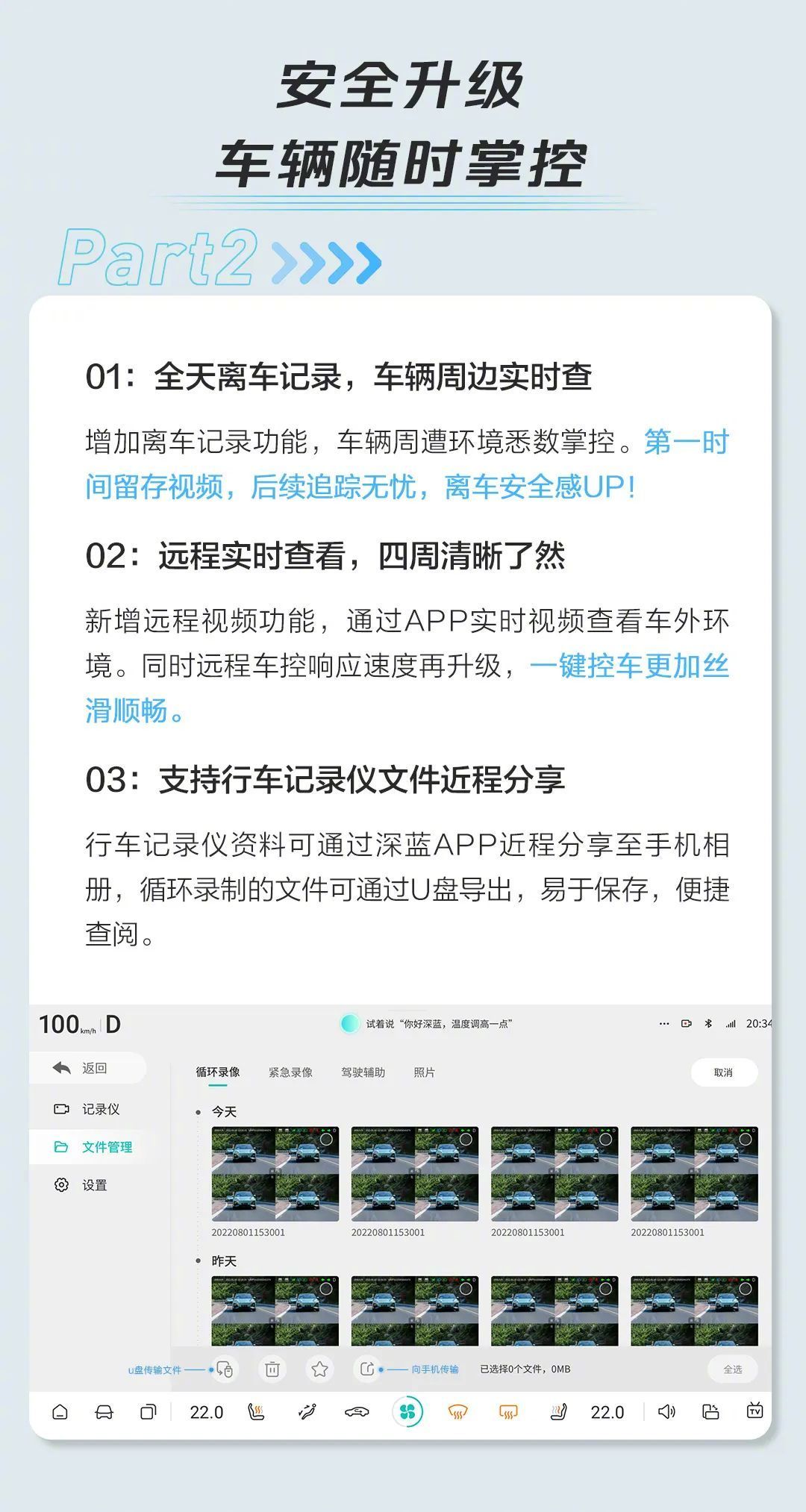 在驾驶辅助方面,深蓝汽车发布DEEPAL OS 2.3版本,升级驾驶辅助、智慧座舱等四大领域,优化功能细节,提升智能化出行体验。同时,仪表功能和智能全景影像进一步优化,为用户提供更直观的驾驶支持。
