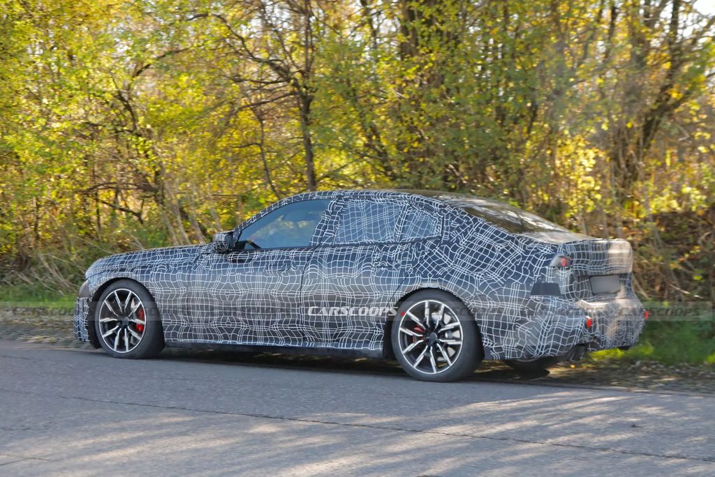 根据曝光的路测图片与 i3 相比,3 系的引擎盖更长,挡风玻璃也更加直立。宝马标志性的鲨鱼鼻设计回归,搭配更具攻击性的前保险杠和微微外扩的翼子板,整体造型更具力量感。