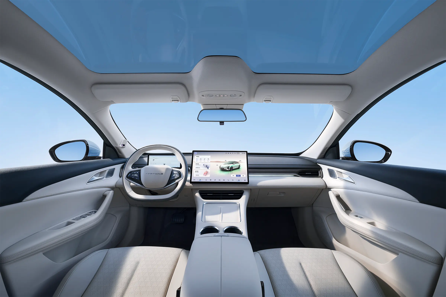 此外,该车配备 8.8 英寸仪表和 15.6 英寸中控屏,支持手机互联、智能语音、50W 手机无线快充,内置了星海 OS 系统。