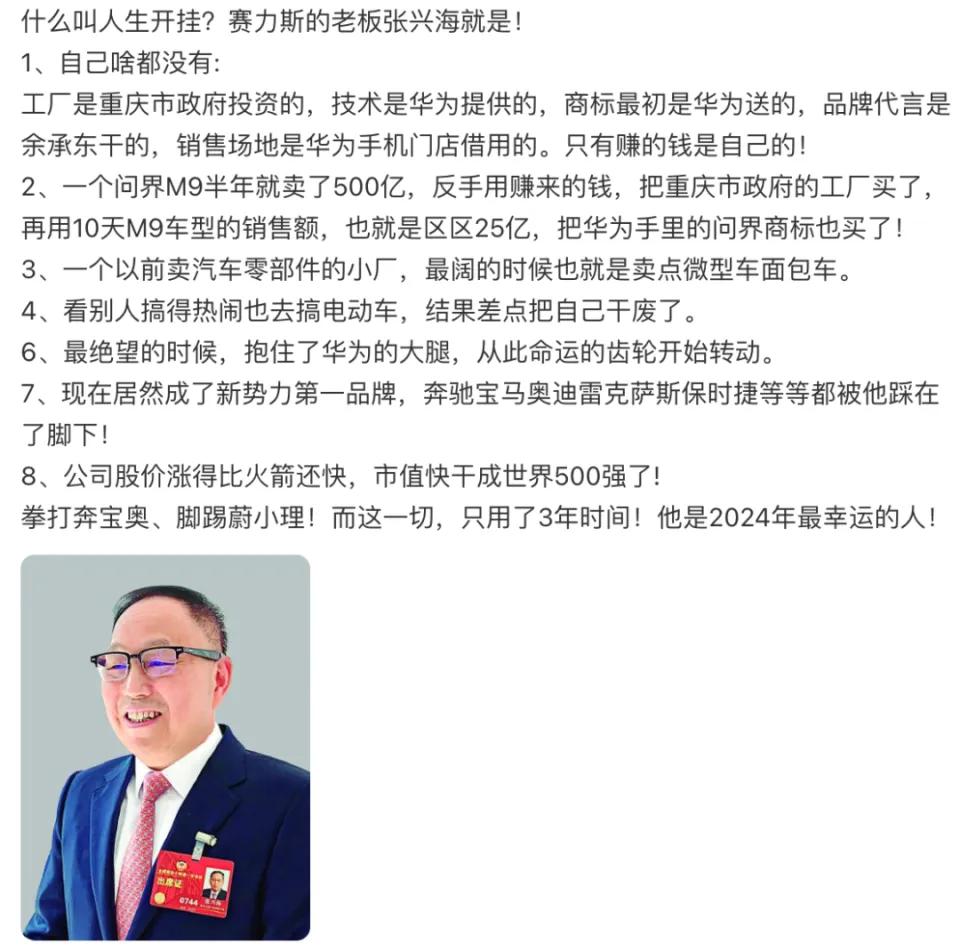 一鸣惊人之后,赛力斯创始人张兴海也引起人们的注意。