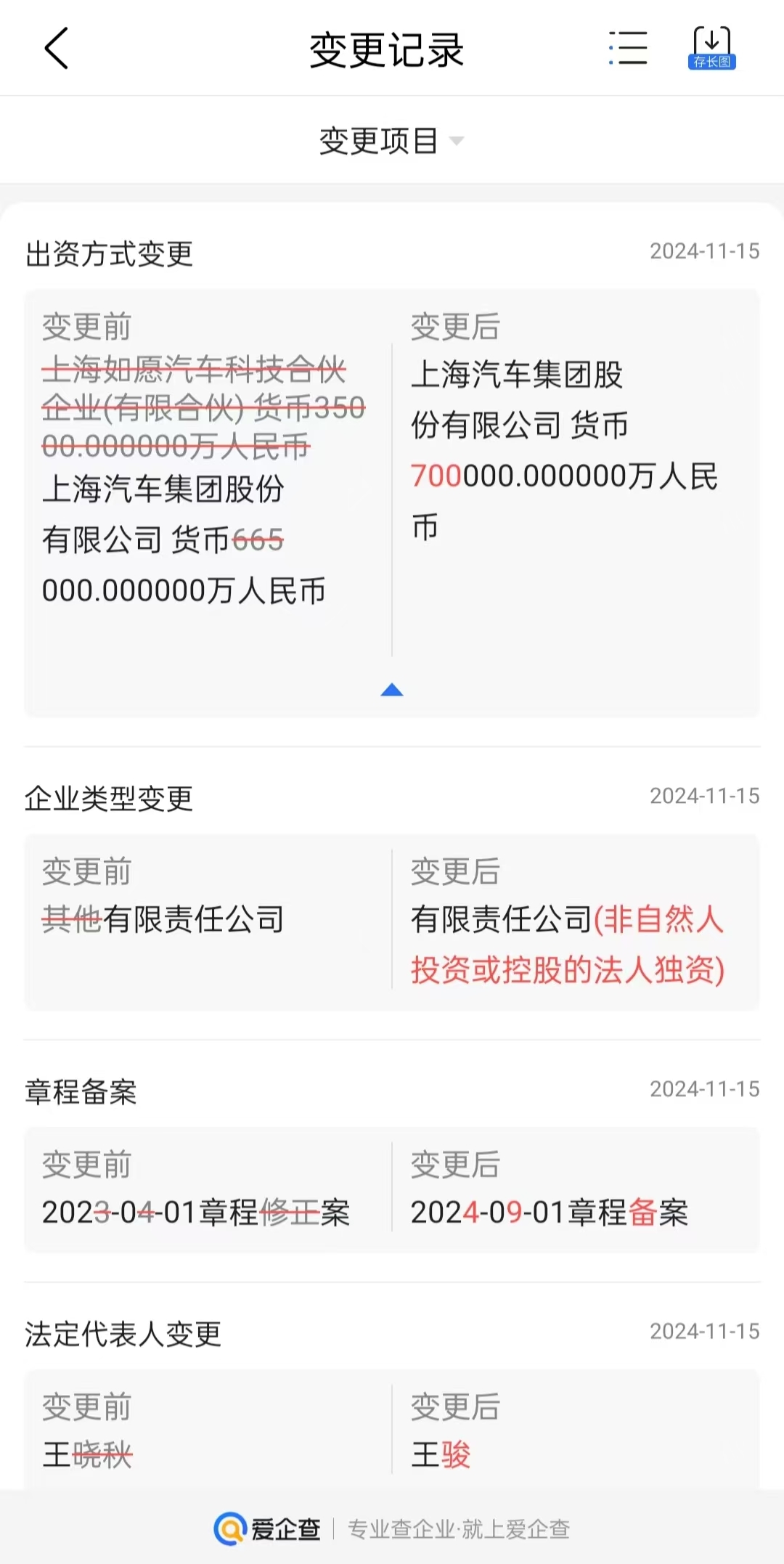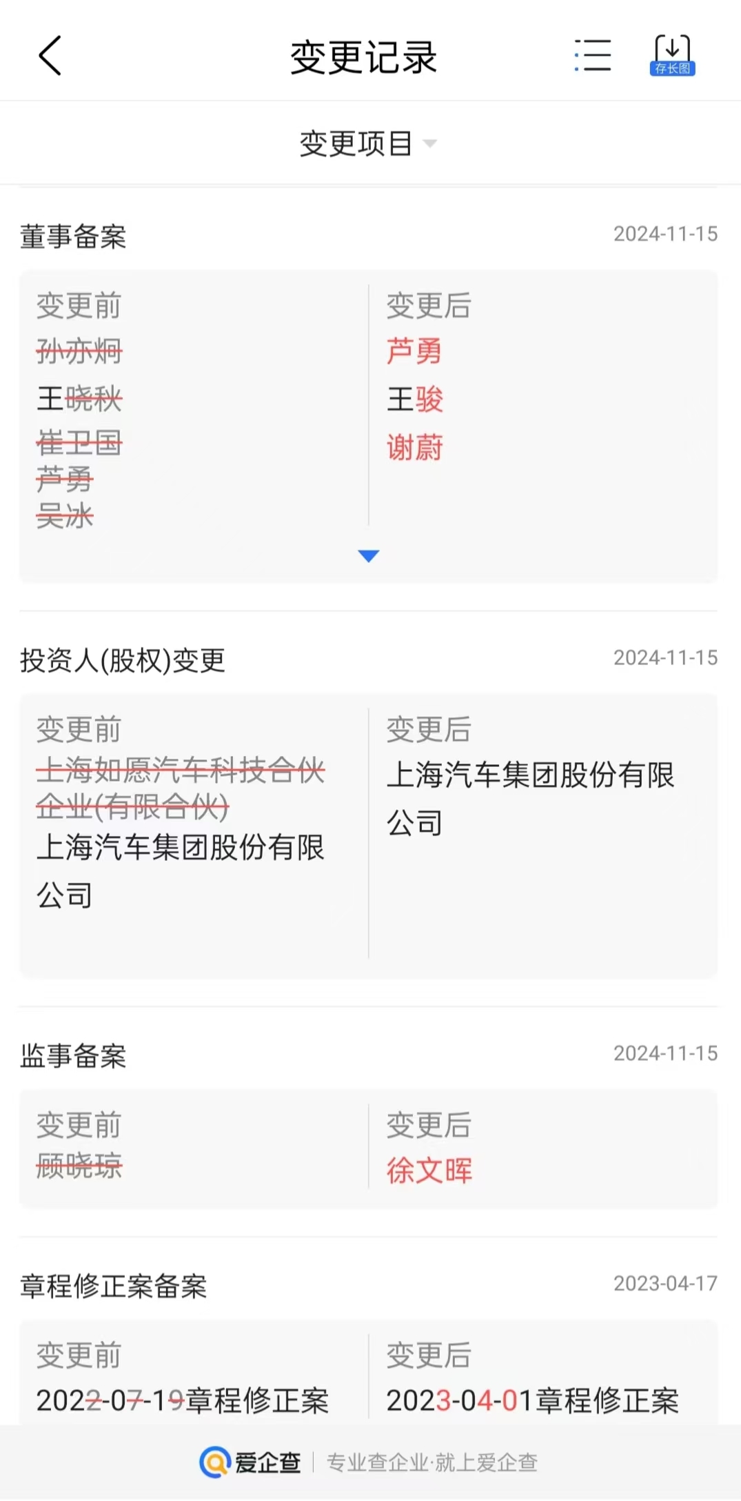 凤凰网科技讯 11月18日,爱企查App显示,近日,飞凡汽车科技有限公司发生工商变更,上海如愿汽车科技合伙企业(有限合伙)退出股东行列,王晓秋卸任法定代表人、董事长,由王骏接任,同时,多位主要人员均发生变更。