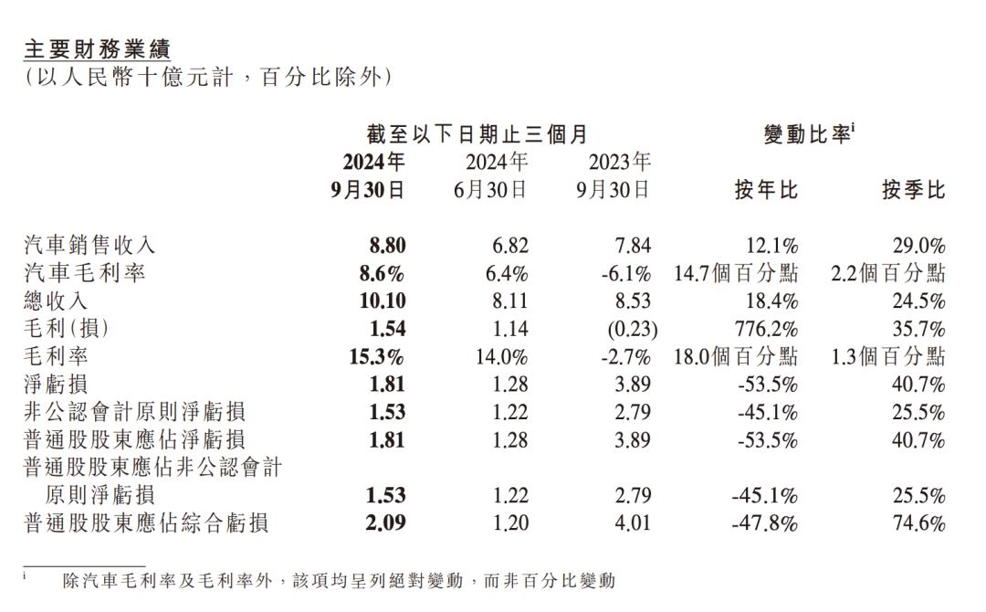 小鹏汽车 2024Q3 主要财务数据