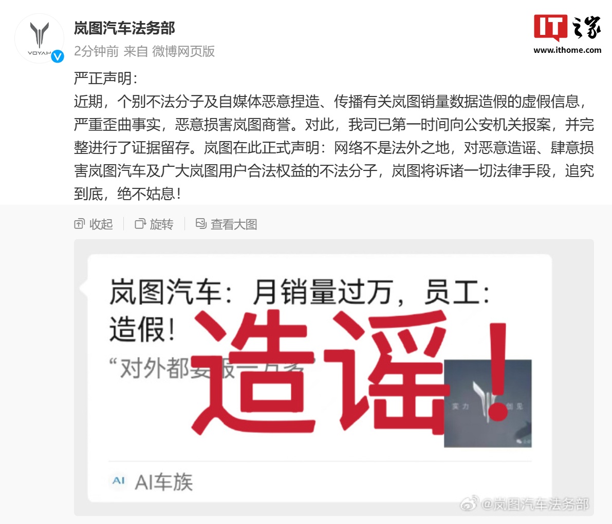 IT之家附岚图汽车法务部原文如下: