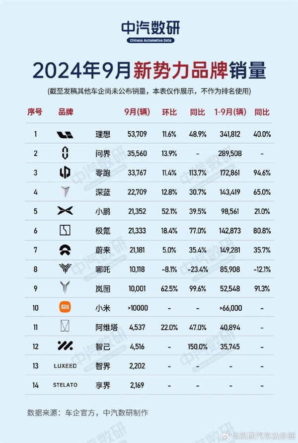 “公开数据显示,岚图汽车今年9-11月的单月交付量分别为10001辆、10157辆和10856辆,虽然连续三个月的环比增幅并不大,但单月交付量都刚好过万。