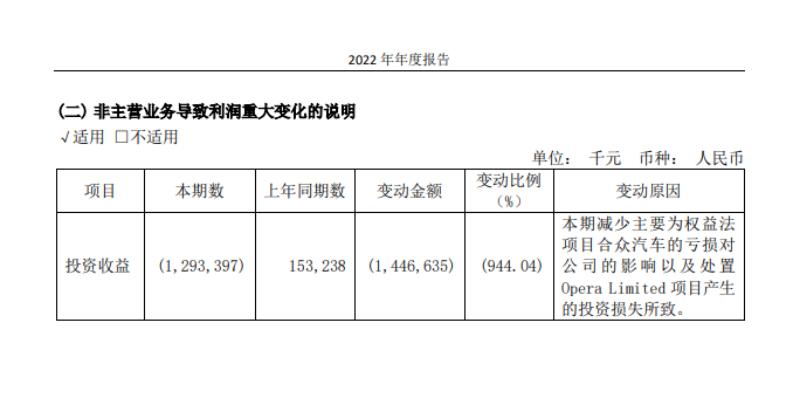 2021年三六零投资了哪吒汽车,到了2022年三六零的年报上投资收益从上一年的1.53亿元到了当年的12.93亿元亏损,对此三六零的解释就包括“合众汽车的亏损对公司的影响”。因此有人打趣说“投资哪吒汽车是周鸿祎悲剧的开始”。