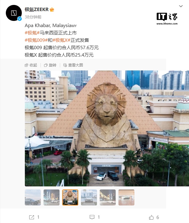 IT之家 12 月 8 日消息,极氪今日宣布正式进入马来西亚市场,极氪 009 和极氪 X 在当地正式发售,其中极氪 009 起售价 349800 林吉特(IT之家注:当前约合人民币 57.6 万元),极氪 X 起售价 155800 林吉特(约合人民币 25.4 万元),两款车型预计于 12 月中旬开启交付。作为对比,极氪 009 在国内的起售价为 43.9 万元,极氪 X 为 14.9 万元。
