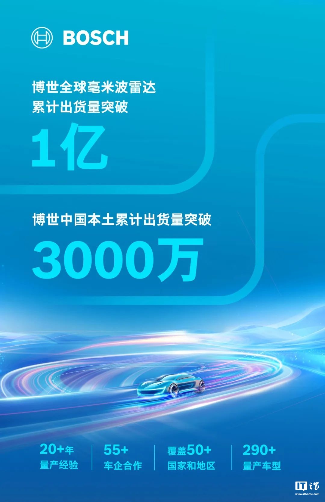 IT之家 12 月 9 日消息,博世智能驾控今日官宣,博世全球毫米波雷达累计出货量突破 1 亿件,博世中国本土累计出货量超 3000 万件。
