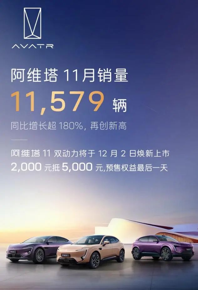 阿维塔11月销量11579台,同比增长180%。阿维塔07上市之后,阿维塔销量持续增长,在10月份实现了销量破万台。