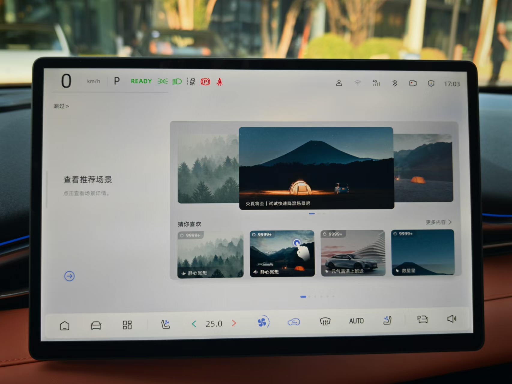 另外不少年纪稍大的用户在接触新能源汽车大屏时都会担心一个问题,就是车机屏幕太亮影响到驾驶,尤其是车库、隧道等弱光场景,车机屏幕会很刺眼。
