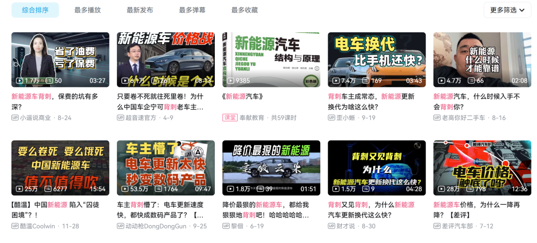 在b站随便一搜,就能看到各家车主吐槽车企“背刺”。有博主吐槽手机更新速度都赶不上新能源车,今年9月9日到9月29日三周时间,就有超60款全新或改款车型上市。