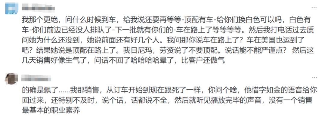 在销售环节,部分消费者反映,销售人员的专业性和服务态度未能完全达到他们的期望,特别是在解答用户疑问和 提供购车建议时,缺乏足够的专业性和细致入微的服务。