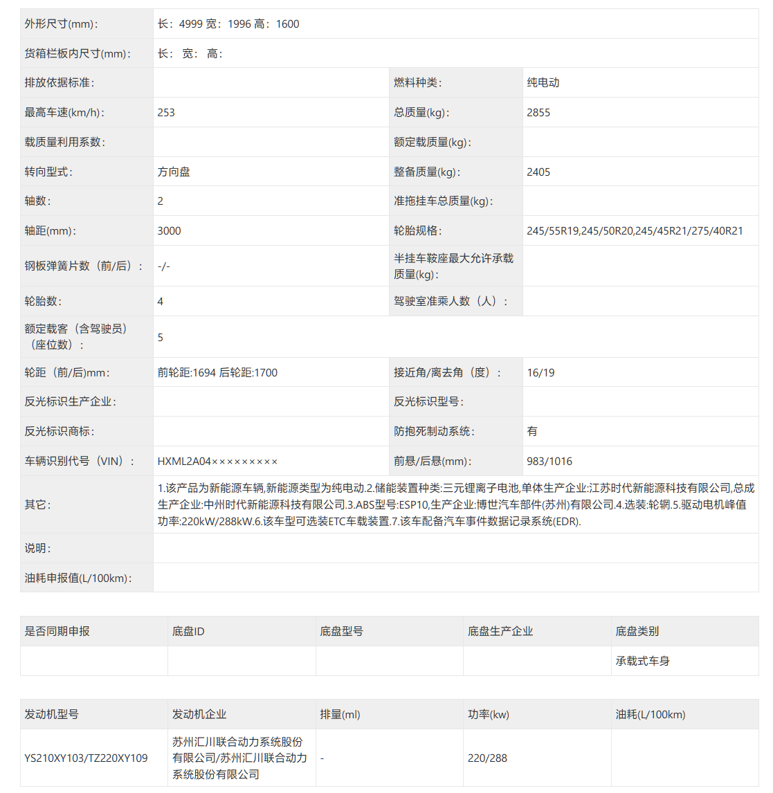 新车搭载由苏州汇川联合动力系统股份有限公司提供的双电机系统,功率分别为 220/288kW。