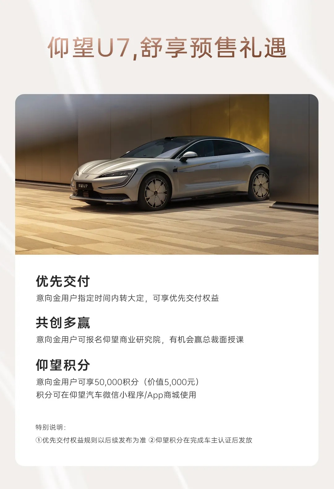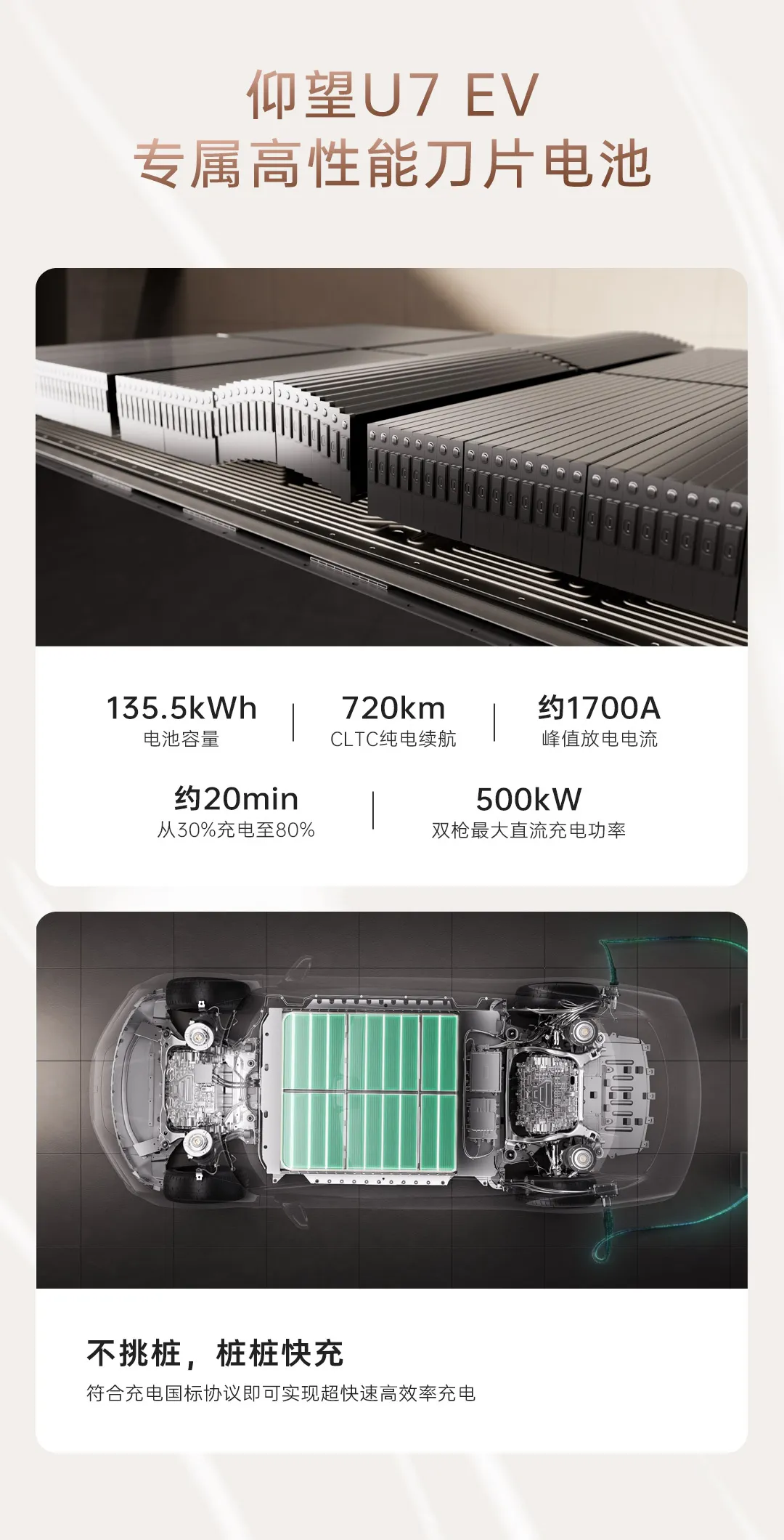 在今年的 2024 广州车展期间,比亚迪旗下全新豪华轿车仰望 U7 开启预售,新车提供纯电、混动两种动力,意向金 2 万元。仰望 U7 插混版车型具备 52.4kWh 电池容量,最大充电功率可达 210kW,综合续航里程 1000km。