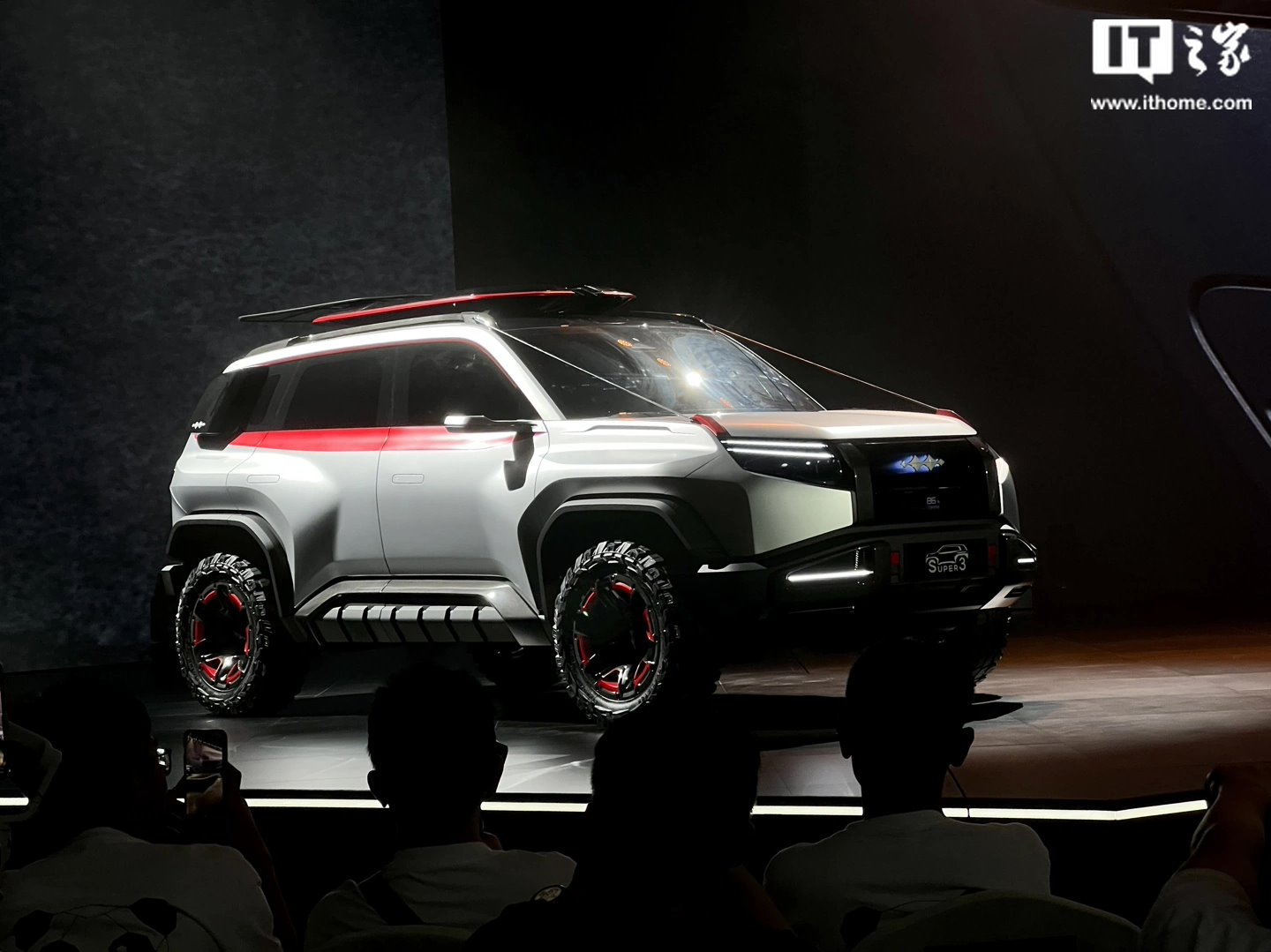 该车设计灵感来源于“星战铠甲”,配备了“星战底盘”,拥有非常硬派的前保险杠、外扩的轮眉来提升整车气势,号称将为驾驶者带来前所未有的体验。值得一提的是,该车配有外挂式全地形备胎,官方称“冲天之势”,可与车载无人机系统配合使用。
