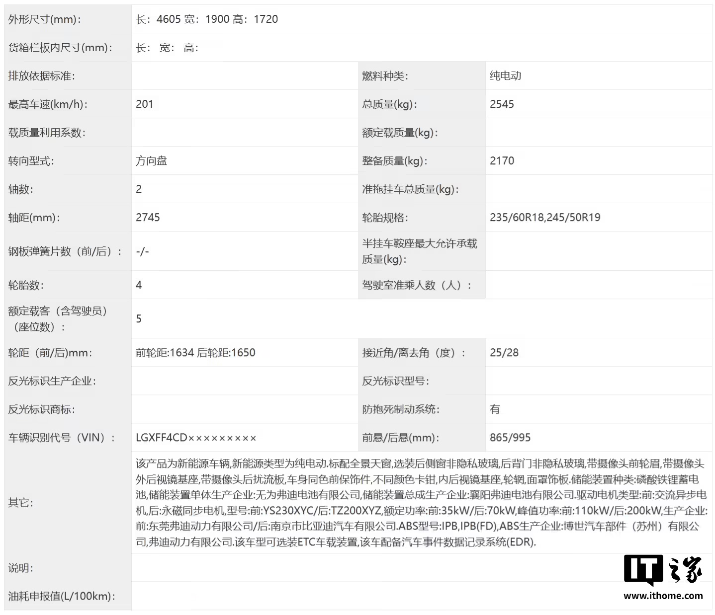 该车提供双电机四驱动力,前电机功率 110 千瓦,后电机 200 千瓦。轮胎尺寸方面,新车将提供 235/60R18 和 245/50R19 两种可选。