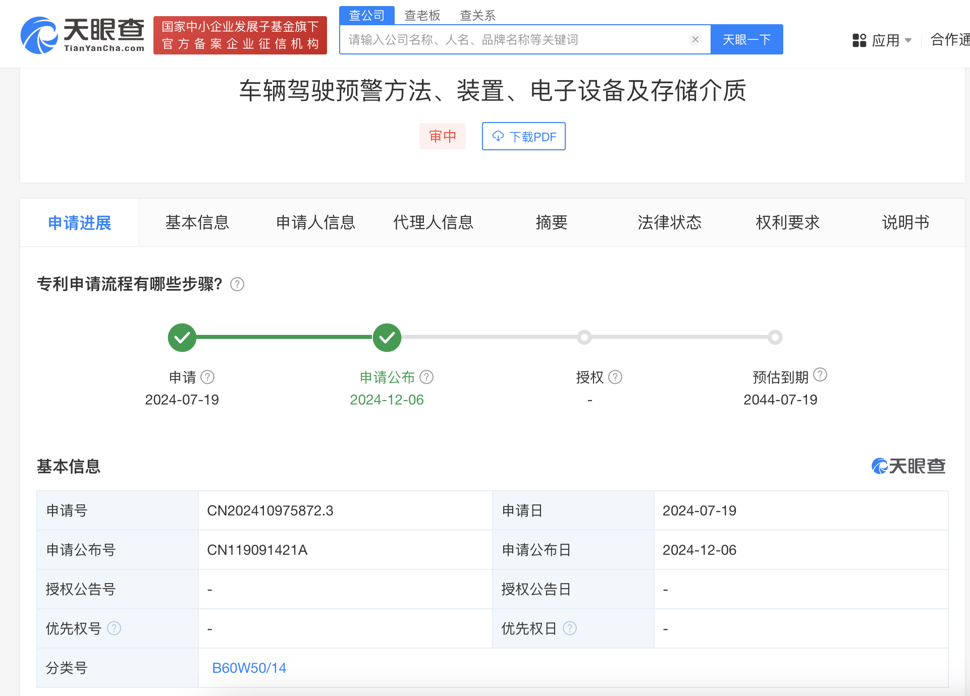 近日,天眼查显示,赛力斯申请的“车辆驾驶预警方法、装置、电子设备及存储介质”专利公布。