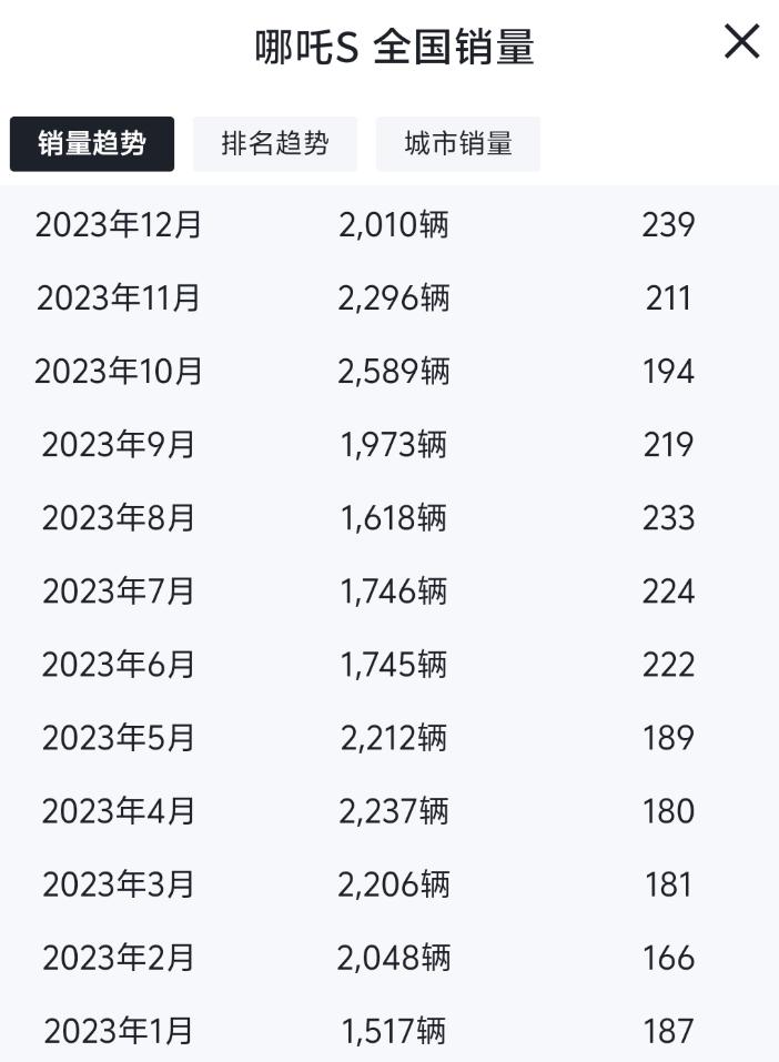 去年,哪吒 S 单月最高才卖 2589 辆。