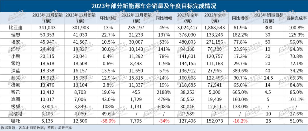 2023 年,哪吒一共卖了 12.7 万辆,同比下降 16% ,是主要新能源车企里唯一一个下跌的品牌。