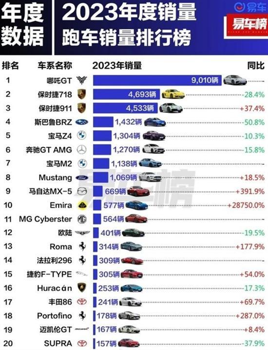 最后的结果,好消息是哪吒 GT 是 2023 年国内销量最高的跑车,并且大幅领先第二名。