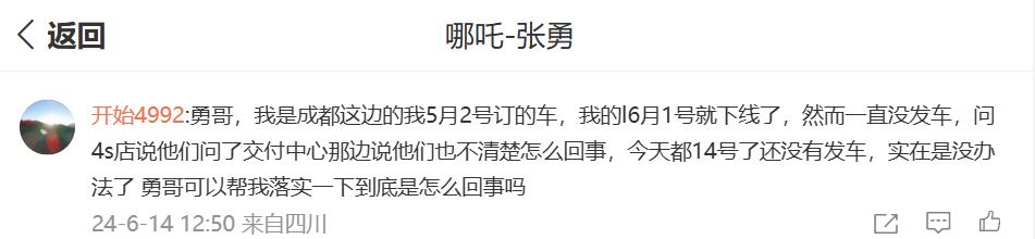 在张勇的微博下面,一堆提不到车的人在催交付。