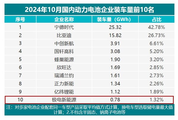 据中国汽车动力电池产业创新联盟统计显示,10月国内动力电池企业装车量排行榜单中,威睿公司四大生产制造基地之一的衢州极电新能源,10月动力电池装车量达0.78GWh,冲入总榜前十,跻身第一梯队。